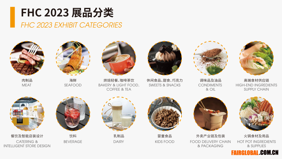 FHC上海環(huán)球食品展是國(guó)內(nèi)首屈一指的綜合性展會(huì)平臺(tái),其主要板塊包括有:肉制品;海鮮;高端乳制品及油品;茶與咖啡,烘焙與冰淇淋;休閑食品、糖果及巧克力;高端食材供應(yīng)鏈;餐飲設(shè)計(jì)及店裝。