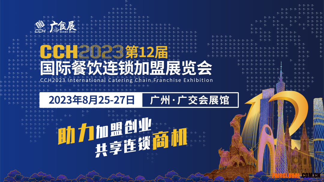 2023年8月25-27日,CCH2023第12屆國際餐飲連鎖加盟展覽會將在廣州·廣交會展館隆重召開!