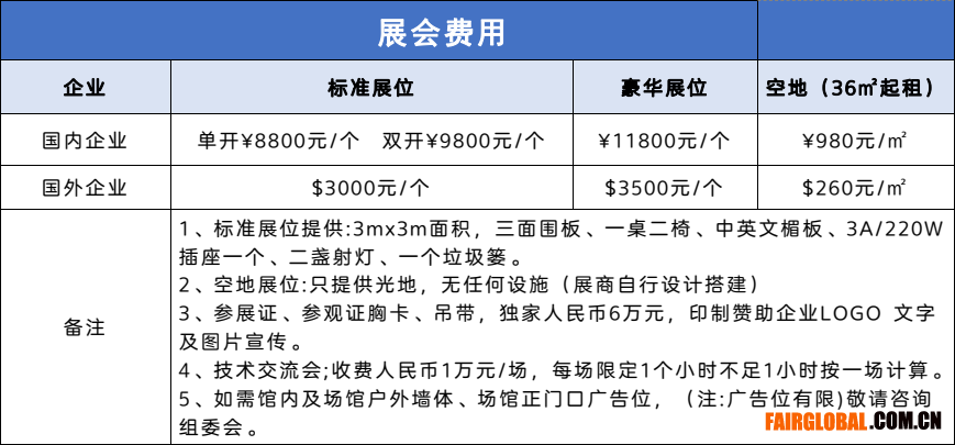 (36㎡起租)空地不帶任何展架及設(shè)施,參展商可自行安排搭建商或者委托主辦單位推薦搭建公司。