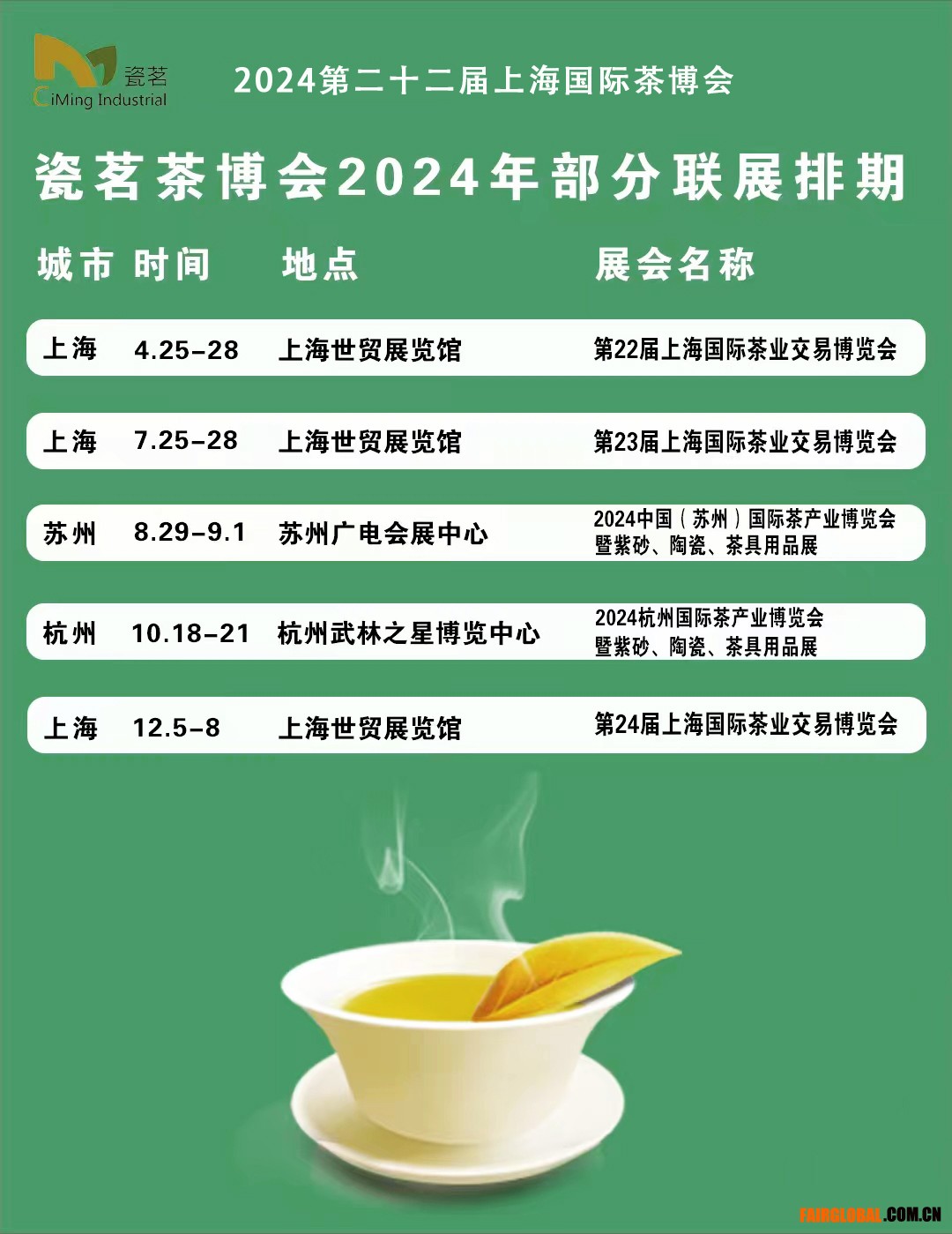【2024年茶博會排期】第22屆 2024.04.25-28 上海世貿(mào)展覽館