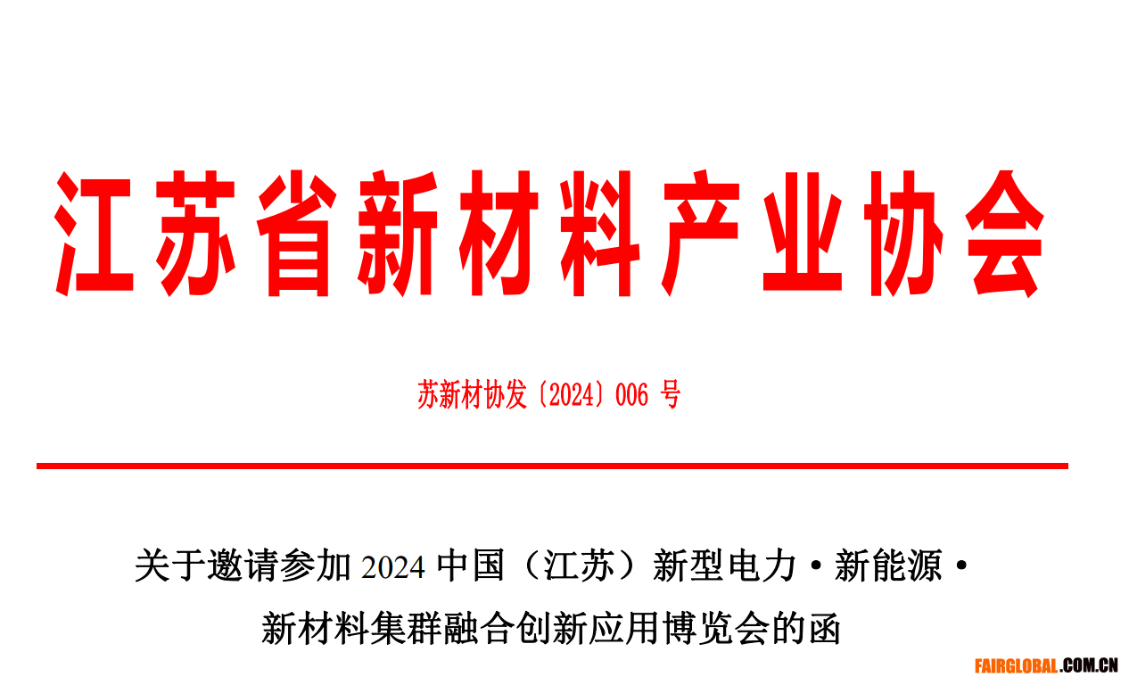 各相關(guān)單位:為深入貫徹落實(shí)總書記參加十四屆全國人大二 次會議江蘇代表團(tuán)審議時強(qiáng)調(diào)“要牢牢把握高質(zhì)量發(fā)展這個 首要任務(wù),因地制宜發(fā)展新質(zhì)生產(chǎn)力”的重要講話精神,推 進(jìn)我國先進(jìn)制造業(yè)集群協(xié)同發(fā)展產(chǎn)業(yè)生態(tài)體系建設(shè),加快能 源結(jié)構(gòu)低碳轉(zhuǎn)型,搭建新型電力、新能源和新材料產(chǎn)業(yè)供需 對接平臺,江蘇省先進(jìn)制造業(yè)集群聯(lián)盟、江蘇省省可再生能 源行業(yè)協(xié)會、江蘇省新材料產(chǎn)業(yè)協(xié)會定于 2024 年 10 月 18 日至 20 日在南京國際博覽中心聯(lián)合主辦“2024 中國(江蘇) 新型電力·新能源·新材料集群融合創(chuàng)新應(yīng)用博覽會”。