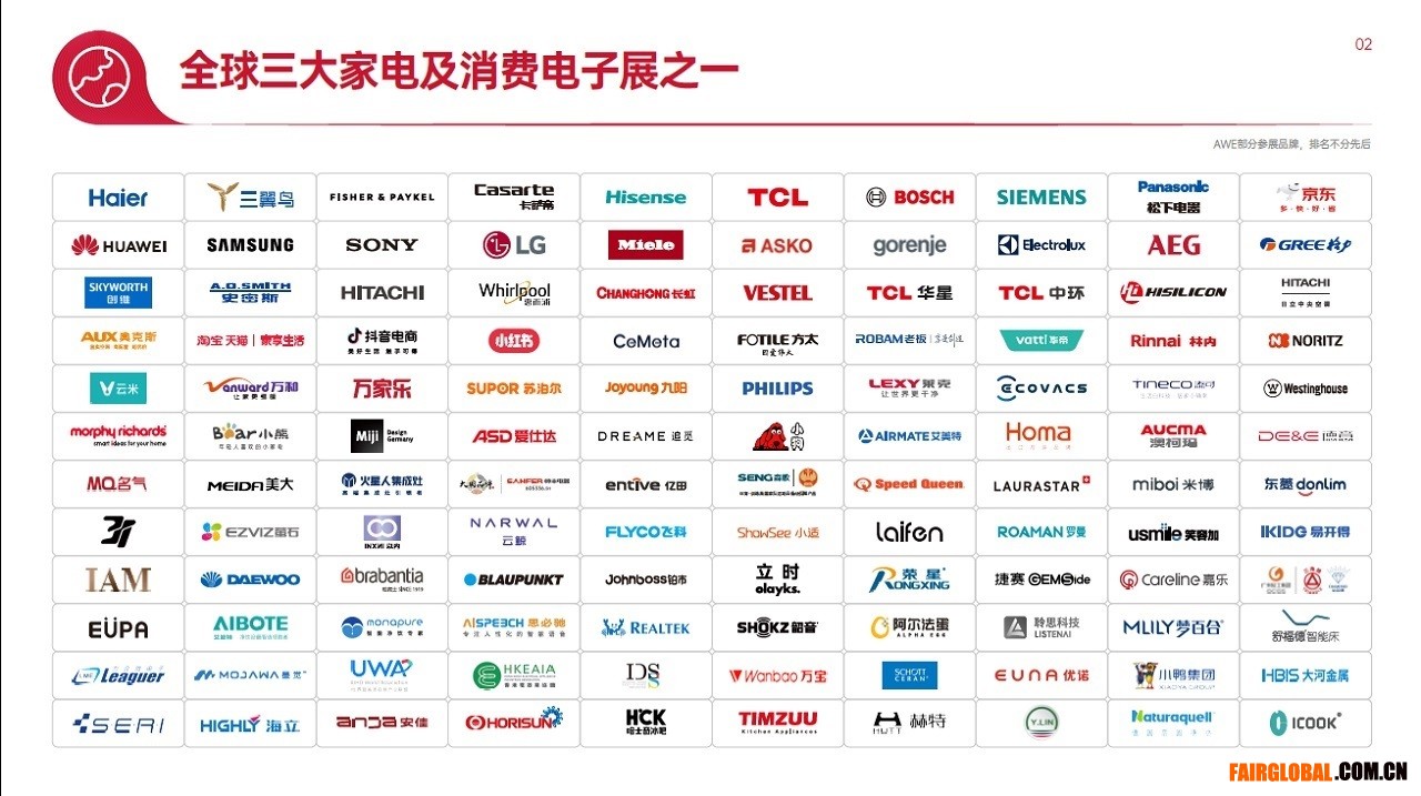 AWE歷來是全球矚目的家電及消費電子行業(yè)盛事,超千家相關領域企業(yè)共聚AWE,在這一全球平臺上展示其企業(yè)實力,將AWE作為年度最重要的品牌整體亮相的舞臺。