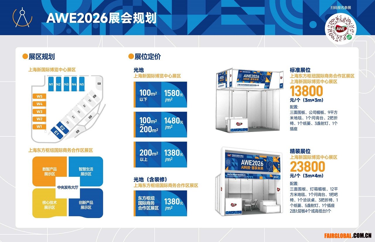 AWE2026的主題為“AI科技、慧享未來”,旨在以人工智能科技為引擎,“慧”聚全球智慧成果,“享”領(lǐng)未來美好生活。AI技術(shù)正在走向規(guī)?;瘧?yīng)用和產(chǎn)業(yè)融合的新階段。以AI為核心的智能技術(shù)廣泛應(yīng)用于產(chǎn)品創(chuàng)新、場(chǎng)景構(gòu)建、用戶體驗(yàn)等層面,AWE將聚焦智慧家庭、智慧出行、智慧城市等場(chǎng)景的快速落地與迭代升級(jí),展示新質(zhì)生產(chǎn)力下的創(chuàng)新成果與智慧生活圖景。