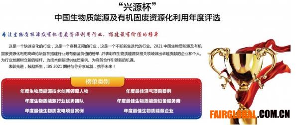 這是一個快速變化的行業(yè),這是一個商機無限的行業(yè),這是一個不斷新生迭代的行業(yè)。IBS2021第九屆生物質(zhì)能源與有機固廢資源化利用高峰論壇旨在搭建行業(yè)最有借鑒價值的榜單,并表彰在 生物質(zhì)能源及相關領域做出卓越貢獻的企業(yè)和個人。為行業(yè)發(fā)展樹立新的標桿。為技術創(chuàng)新提 供優(yōu)質(zhì)案例。為商務合作引領新的機遇。
