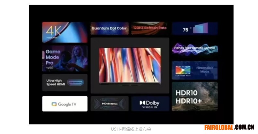 其中包括Mini LED背光電視U9HU8H兩款產(chǎn)品。U9H尺寸為76英寸,擁有4K分辨率,1280個全陣列局部控光區(qū),峰值亮度可達(dá)2000nits。電視內(nèi)置自動低延遲模式、專業(yè)游戲模式,產(chǎn)品將在2022第二季度末上市,預(yù)計售價3200美元。