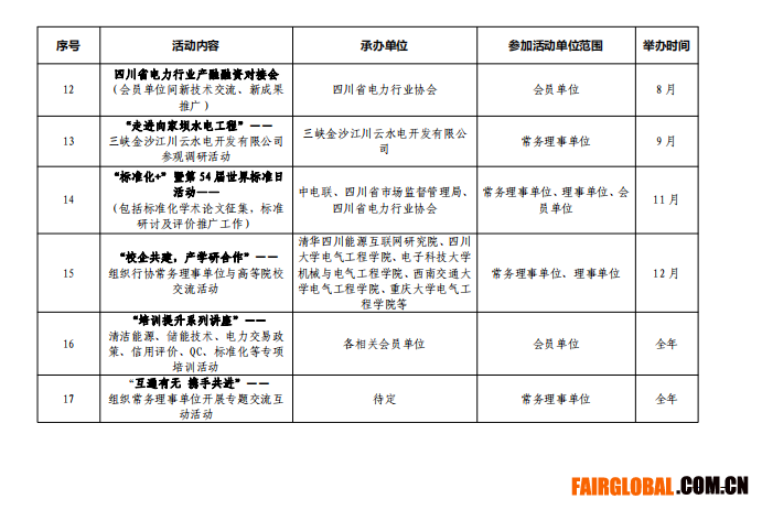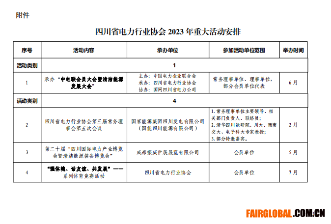 除本次展會以外,由中國電力企業(yè)聯(lián)合會主辦、四川省電力行業(yè)協(xié)會承辦、國網(wǎng)四川省電力公司協(xié)辦的中電聯(lián)會員大會暨清潔能源發(fā)展大會也將于6月在成都舉行。
