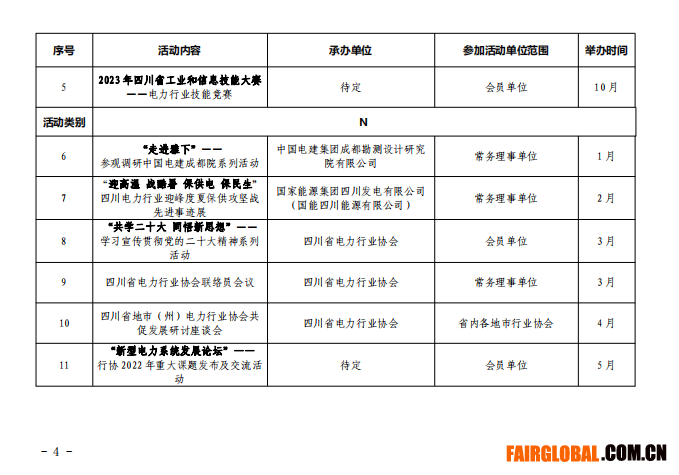2月22日,四川省電力行業(yè)協(xié)會(簡稱“行協(xié)”)印發(fā)2023年工作計劃和重大活動安排。2023年,行協(xié)將全面貫徹落實黨的二十大報告中提出的調(diào)整能源結(jié)構(gòu)、加快規(guī)劃建設(shè)新能源體系,確保能源安全等要求,全面發(fā)揮好協(xié)會平臺、橋梁、紐帶、主體等功能,著力開展10項以上重要活動。
