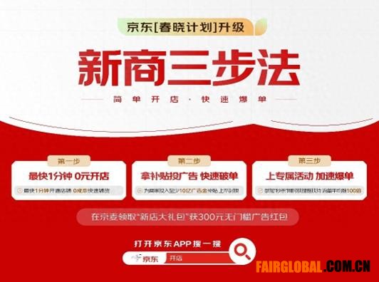 近日,京東宣布升級“春曉計(jì)劃”,重磅推出“新商三步法”,包含“0元開店、拿補(bǔ)貼投廣告、上專屬活動(dòng)”三大步驟,為新商家提供了簡單、明確、有效的開店指南,新商家只需跟著步驟操作,即可快速起量、加速爆單。