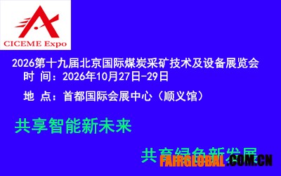 2026第十九屆北京國際煤炭采礦技術(shù)及設(shè)備展覽會(huì) (CICEME Expo2026)將于 2026年10月27日-29日在首都國際會(huì)展中心(順義館)舉辦,歡迎您屆時(shí)參觀參展!